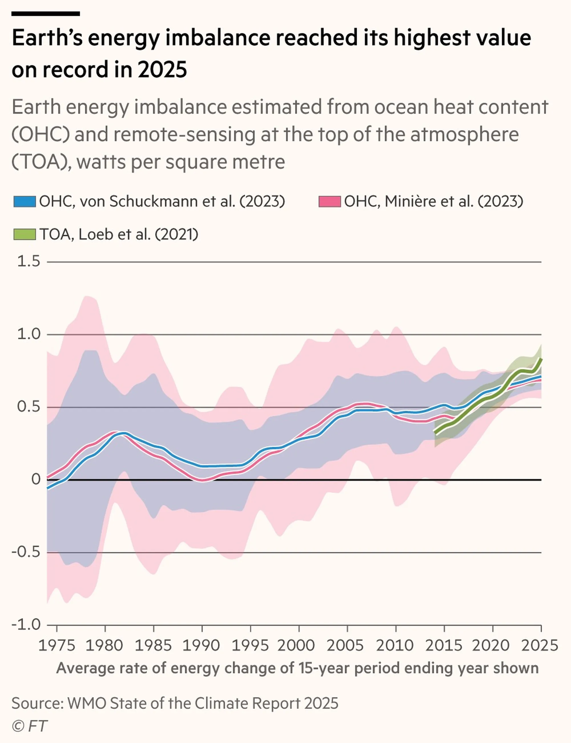 “These are huge quantities of energy — the 2025 increase alone was about 39 times the annual human energy use,” explained John Kennedy, lead author of the report.
