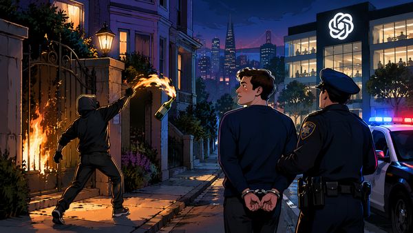 OpenAI CEO山姆·奥特曼家门口遭扔燃烧瓶,幸好只烤糊了铁门。嫌疑人已被捕,还威胁烧掉总部。AI世界,真的是火力全开——偶尔还真点着了。